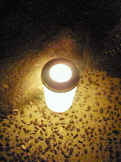 小さい水車とかがある周りにキャンドルがほのかに光って…