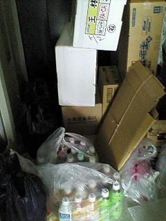 黒い部分にはペットボトルが入った袋が2つ並んでます。